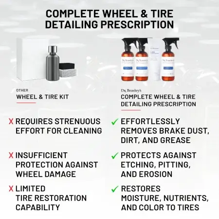Dr. Beasley’s Tire Conditioner restores color, moisture, and nutrients to tires, repairing damage from UV rays. Its UV inhibitors protect against future UV damage, while its customizable shine levels offer versatility. With a low-sling formula, it ensures no product waste during application.