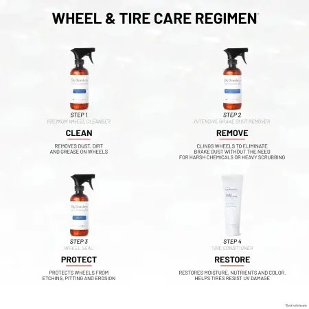 Wheel Seal’s protective coating shields against brake dust, etching, pitting, and rust, preventing irreversible damage. Its advanced synthetic formula withstands high temperatures and rinses off brake dust with ease during regular washing.