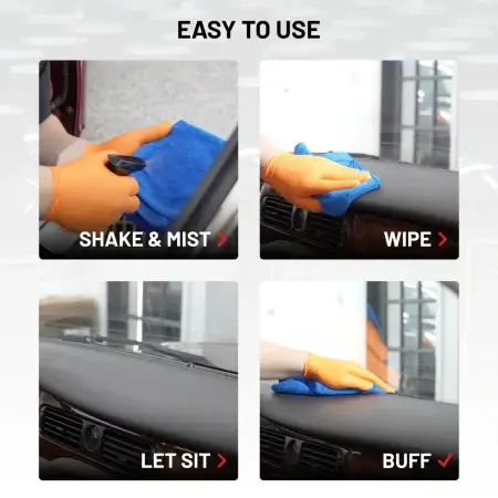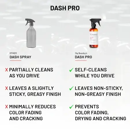 Many dashboard and leather products contain silicones and oils which can actually attract dust! Dash Pro leaves behind a non-greasy, non-sticky surface that’s dry to the touch, so your dash will have a fresh OEM look.