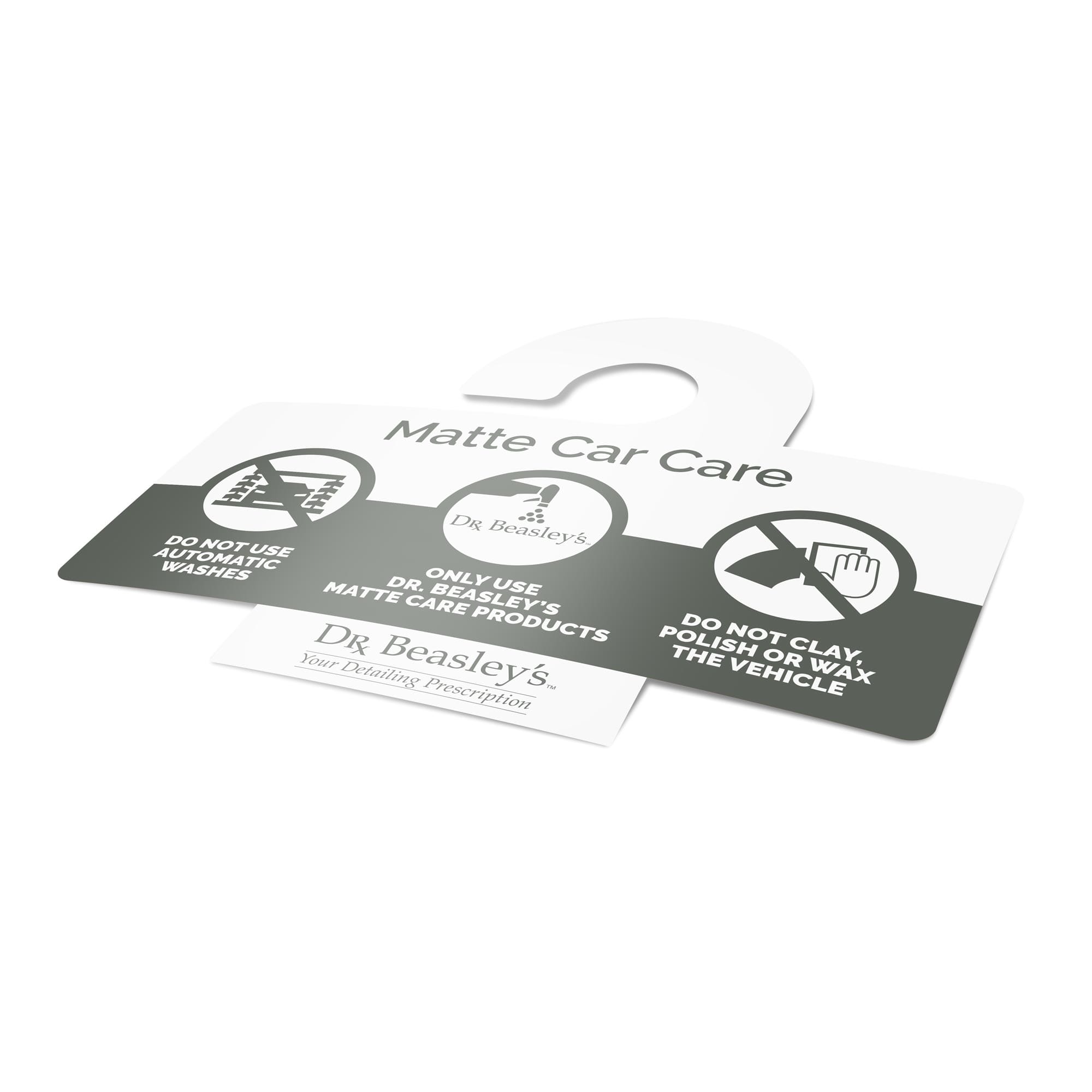 Dr. Beasley’s “Do Not Wash” Hanger — Matte is an easy way to let dealerships, detailers and everyone else know that your vehicle is ceramic coated and should not be washed! Whether you need to protect the coating for the first week after application or keep dealership detailers from taking your coating through an automatic wash, the “Do Not Wash” hanger says it all. Also available in gloss.