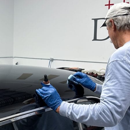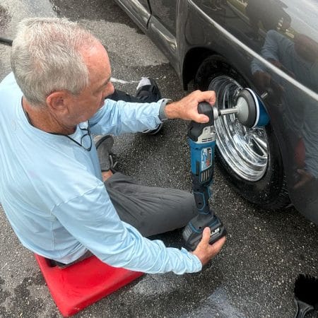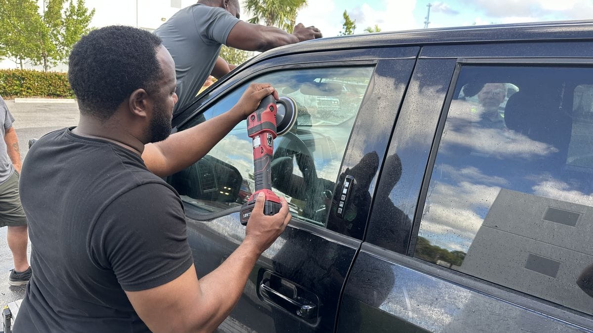 To end the first day, students will learn how to polish glass using the two vehicles from the previous paintwork correction classes. Students will start by using topical glass polishing to remove water spots and traffic film. If inspection reveals deeper defects like wiper scratches, sub-surface glass polishing will be used as well.
