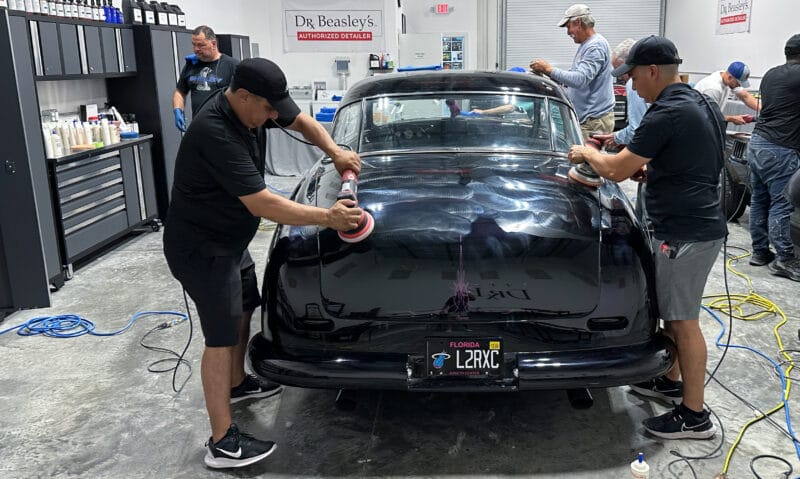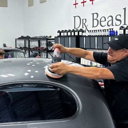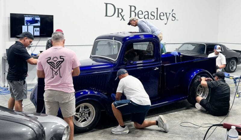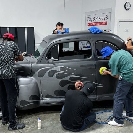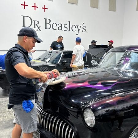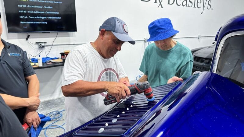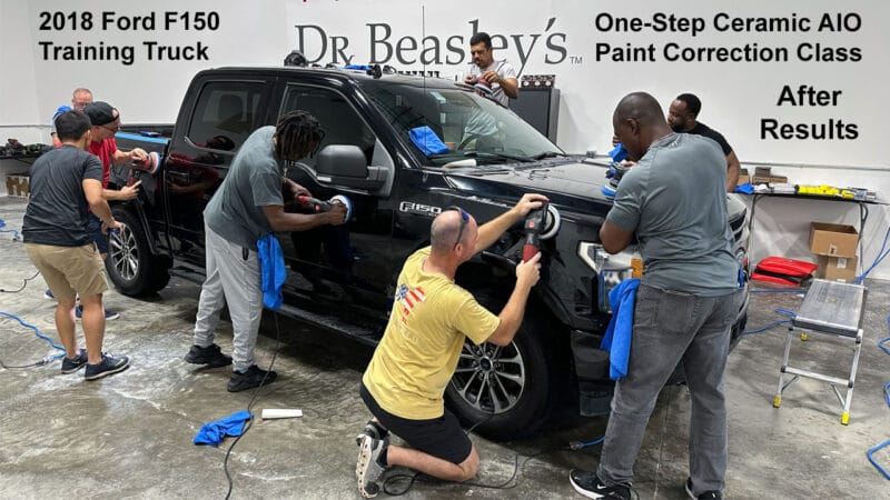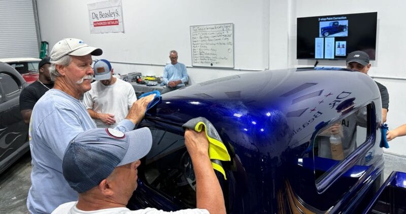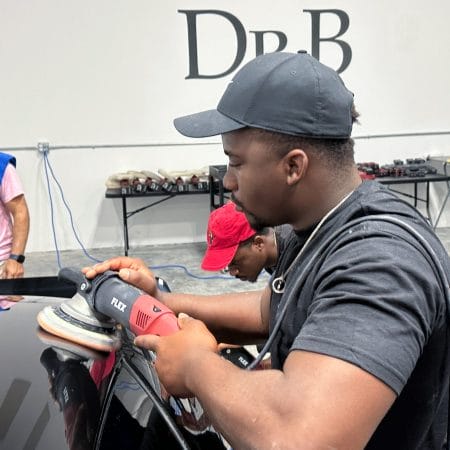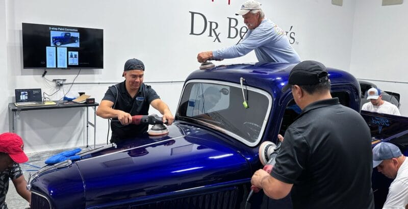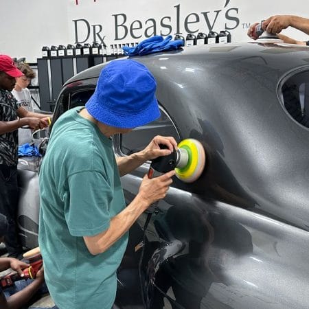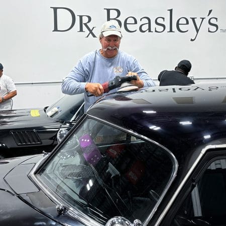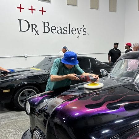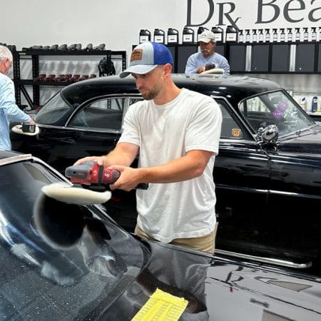 For the afternoon session, students will learn how to use an All-In-One paintwork correction procedure to restore and protect automotive paint at the same time. This is a common service for clients seeking the fastest results possible, or for those looking for a lower level of service. Students will use Dr. Beasley’s NSP Z1 and orbital polishers with foam pads to restore the vehicle’s finish.