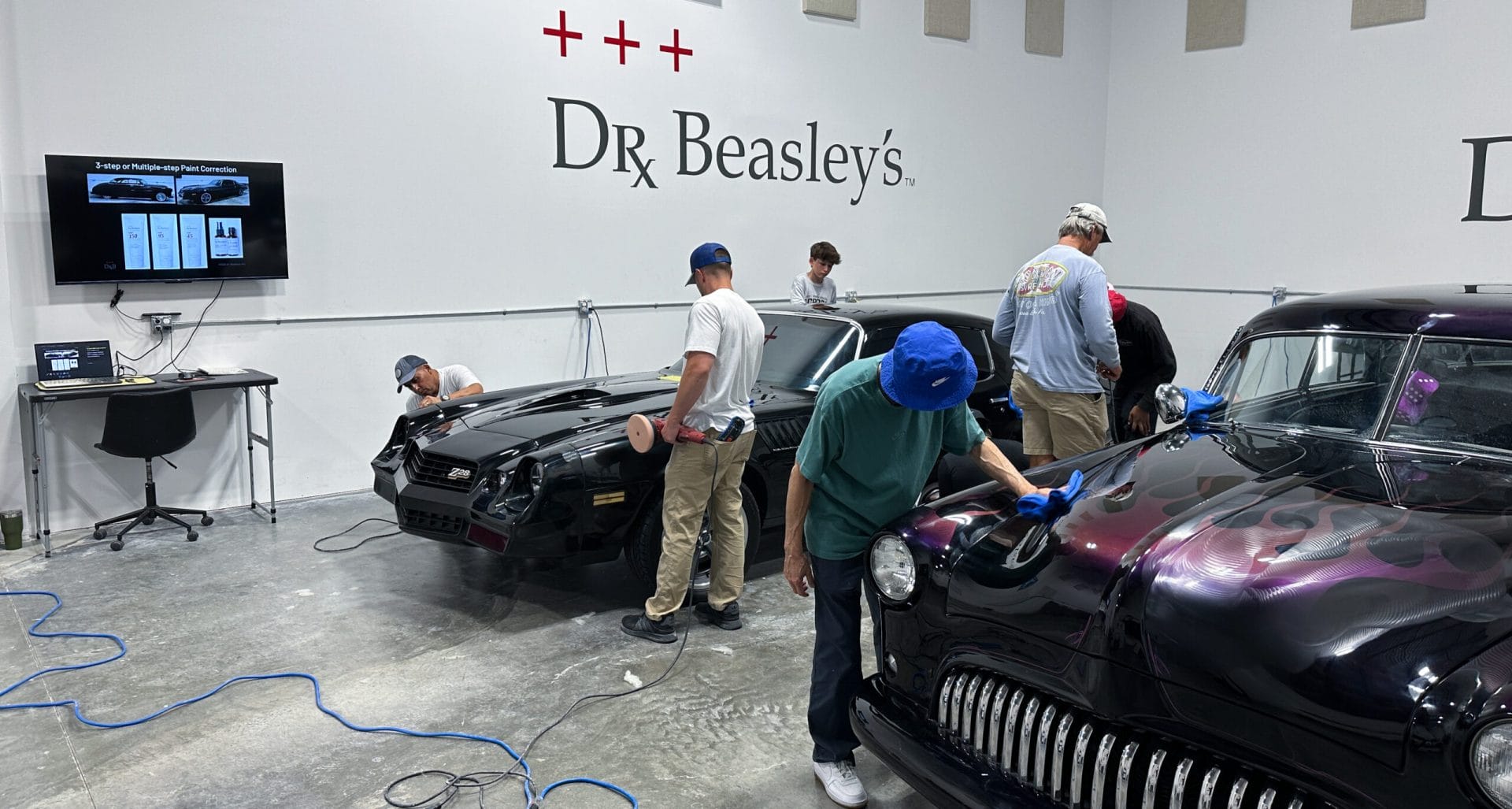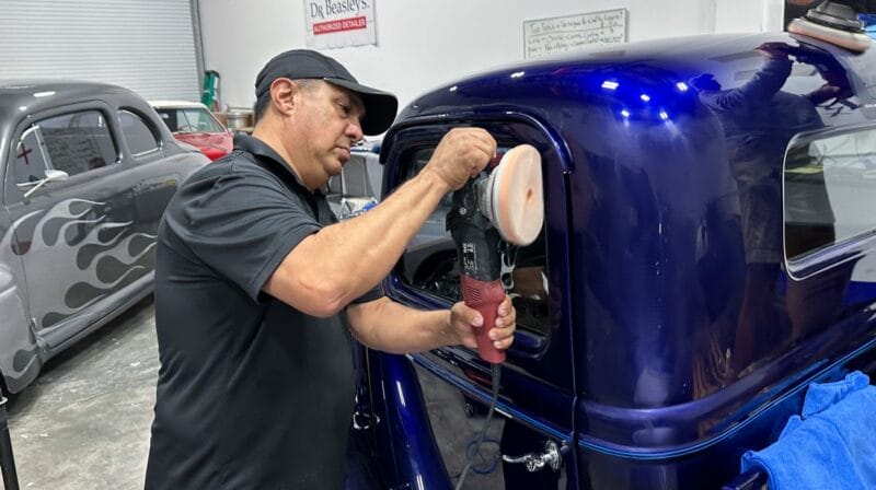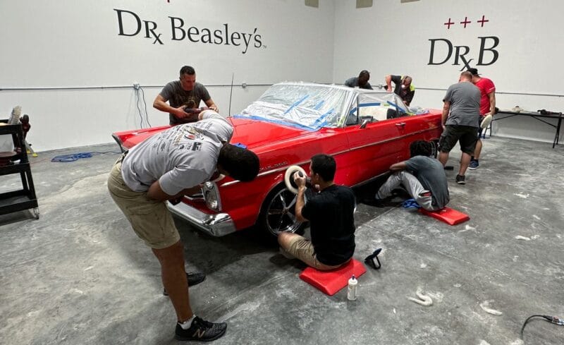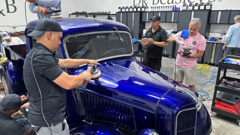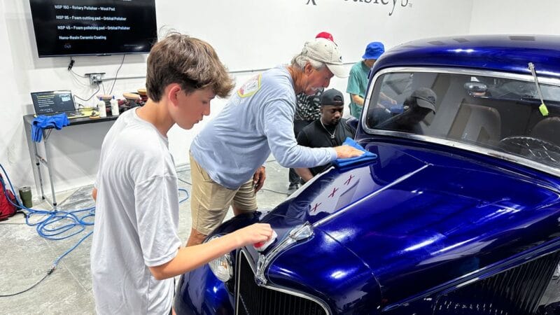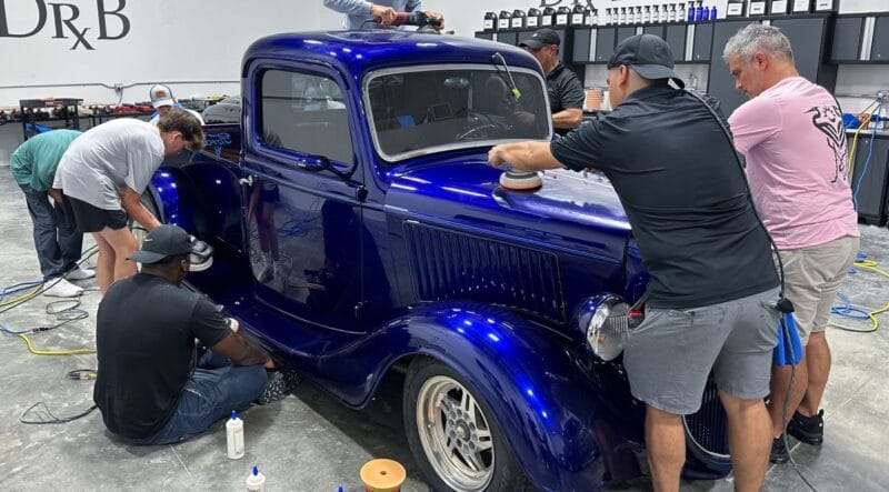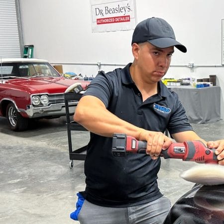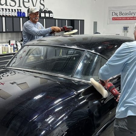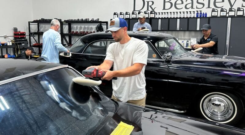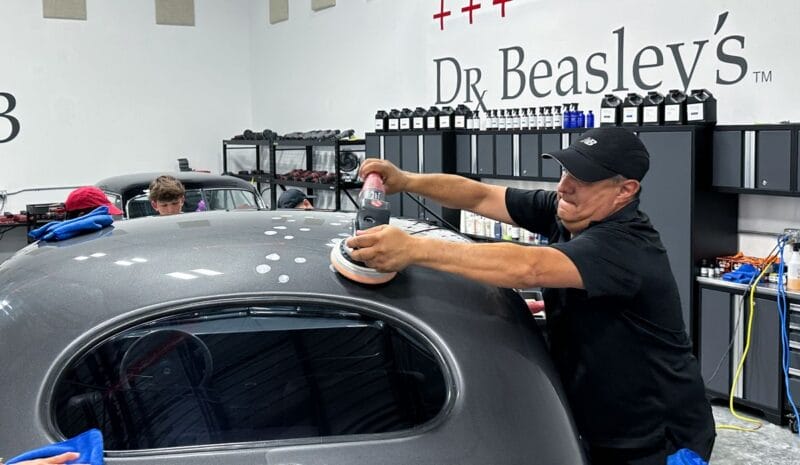 For the afternoon session, students will learn how to use an All-In-One paintwork correction procedure to restore and protect automotive paint at the same time. This is a common service for clients seeking the fastest results possible, or for those looking for a lower level of service. Students will use Dr. Beasley’s NSP Z1 and orbital polishers with foam pads to restore the vehicle’s finish.