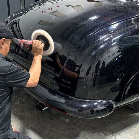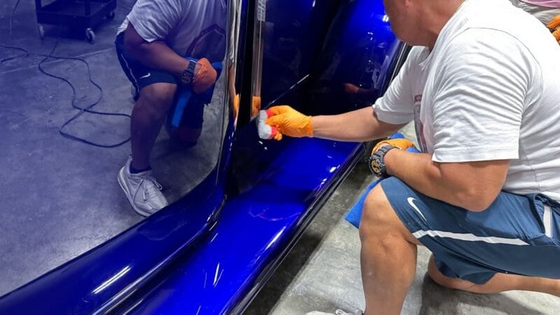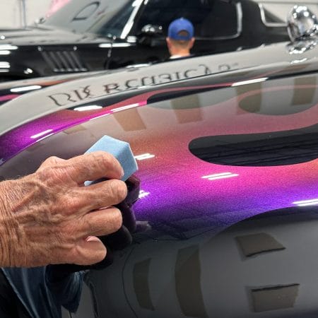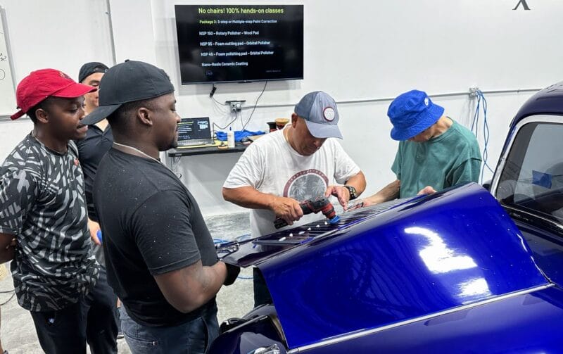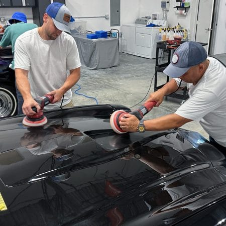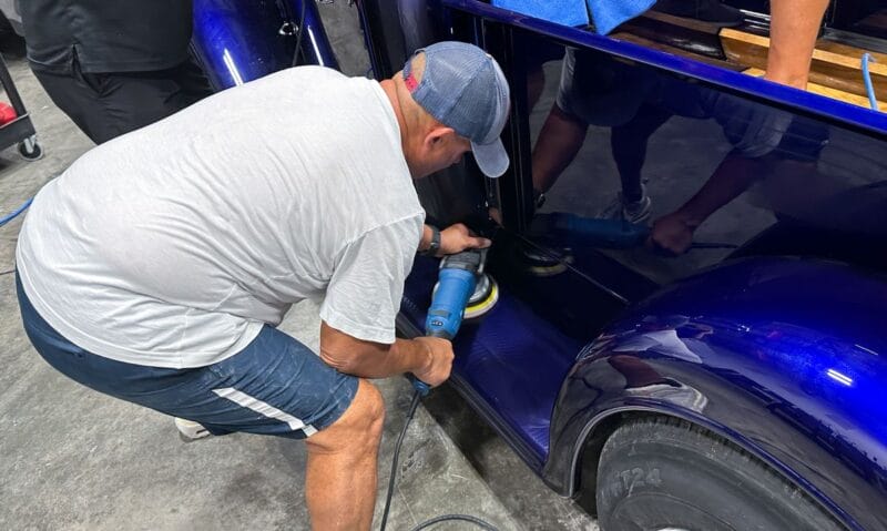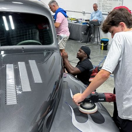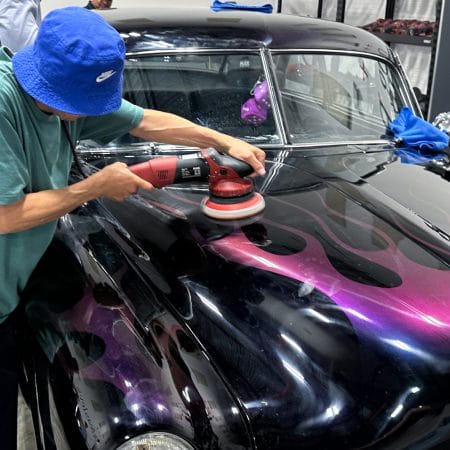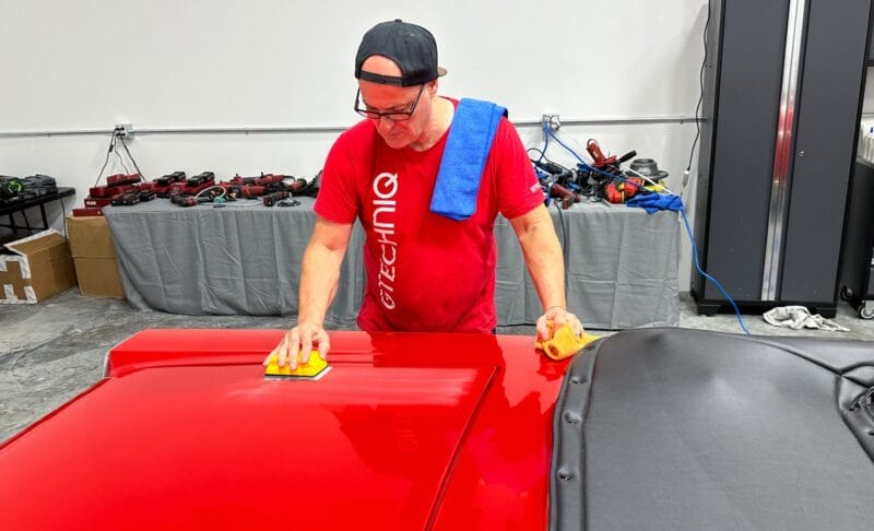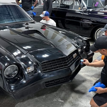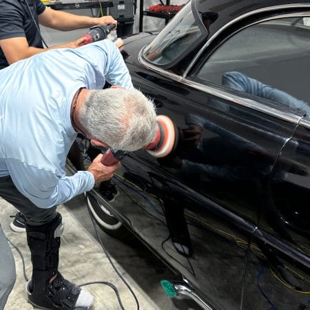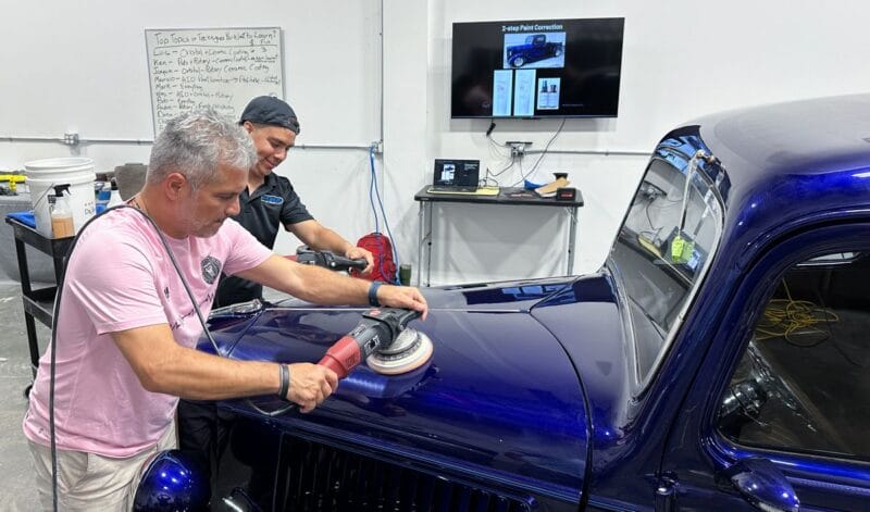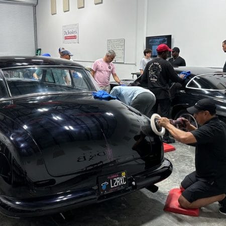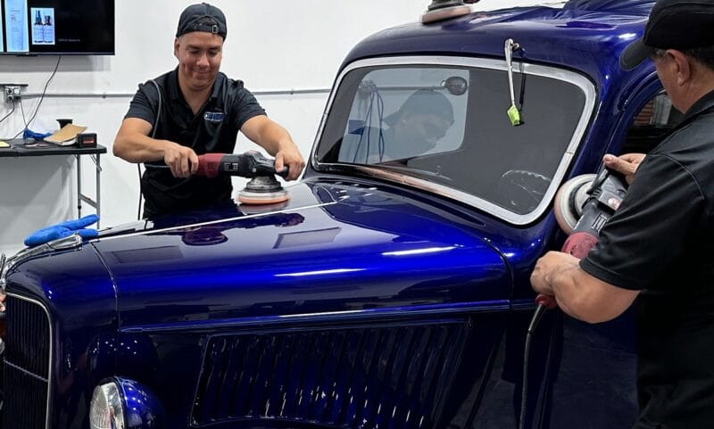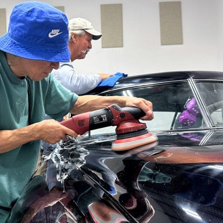 Once the vehicle is fully prepped, students will learn how to conduct one of the most aggressive paintwork correction procedures: machine dry sanding. The ultimate paintwork correction procedure for producing a show car finish, it is often used to remove orange peel on custom paint jobs for Concours d’Elegance events. After instruction, students will sand the vehicle’s paint, use rotary polishers to remove sanding marks and orbital polishers with foam pads to finish out before protection with a ceramic coating. Topics covered include:
