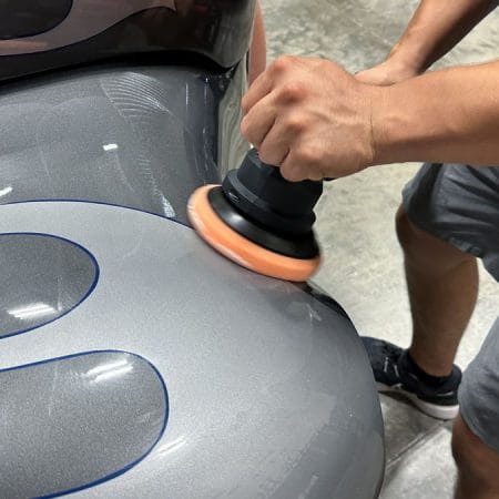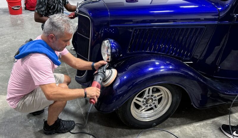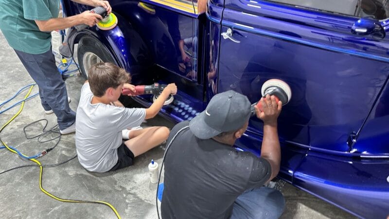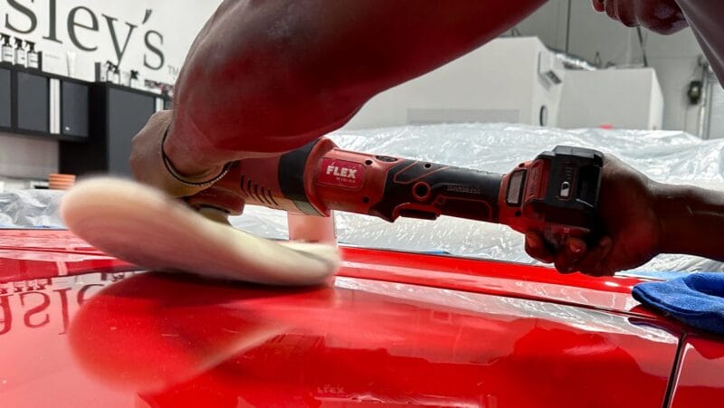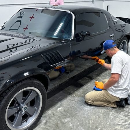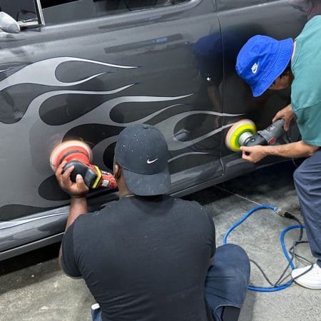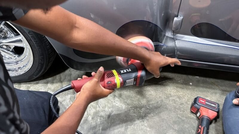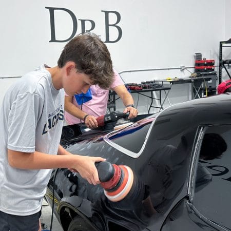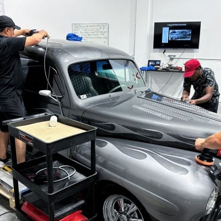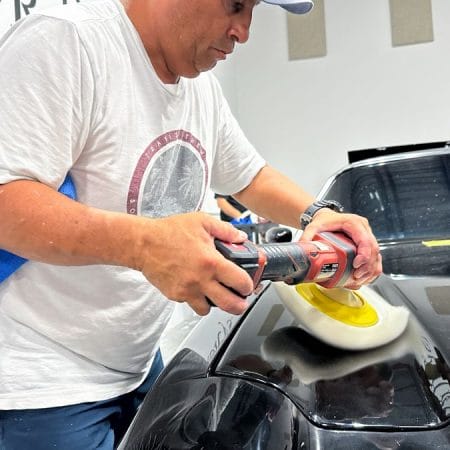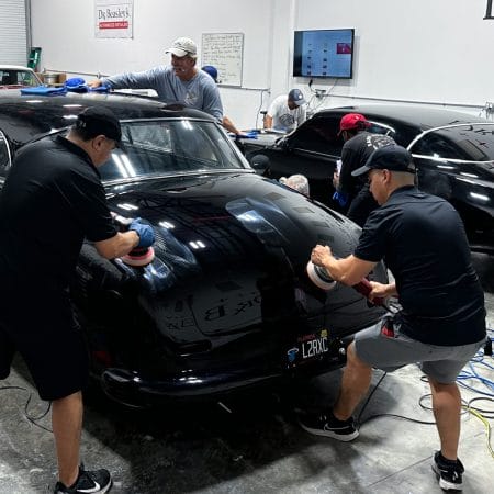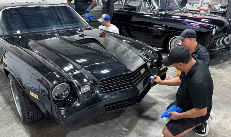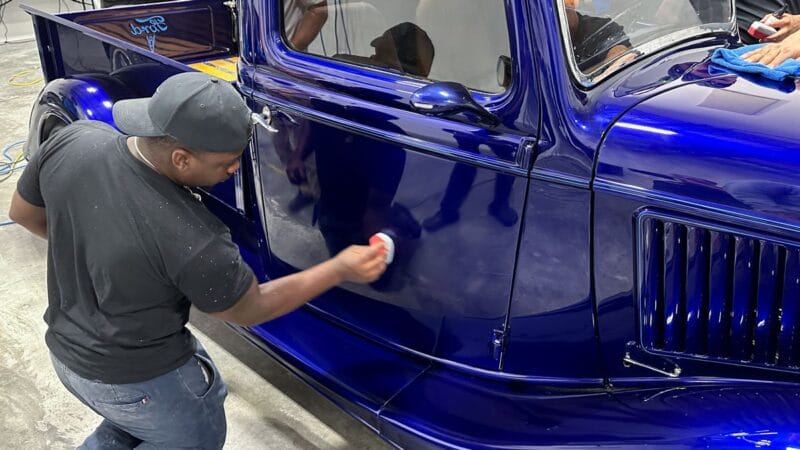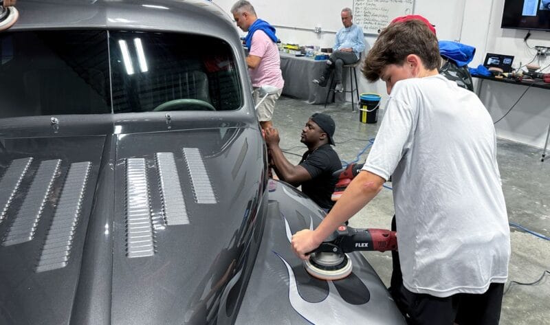 Once the vehicle is fully prepped, students will learn how to conduct one of the most aggressive paintwork correction procedures: machine dry sanding. The ultimate paintwork correction procedure for producing a show car finish, it is often used to remove orange peel on custom paint jobs for Concours d’Elegance events. After instruction, students will sand the vehicle’s paint, use rotary polishers to remove sanding marks and orbital polishers with foam pads to finish out before protection with a ceramic coating. Topics covered include: