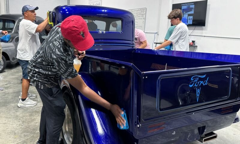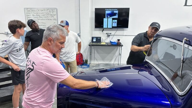 Following completion of the last car, students will participate in a graduation ceremony with an opportunity for a photo with Mike as well as a group photo in front of the vehicles detailed by the class. Individual framed certificates will be mailed out from our headquarters in Chicago following the class.