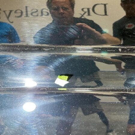 To end the first day, students will learn how to polish glass using the two vehicles from the previous paintwork correction classes. Students will start by using topical glass polishing to remove water spots and traffic film. If inspection reveals deeper defects like wiper scratches, sub-surface glass polishing will be used as well.