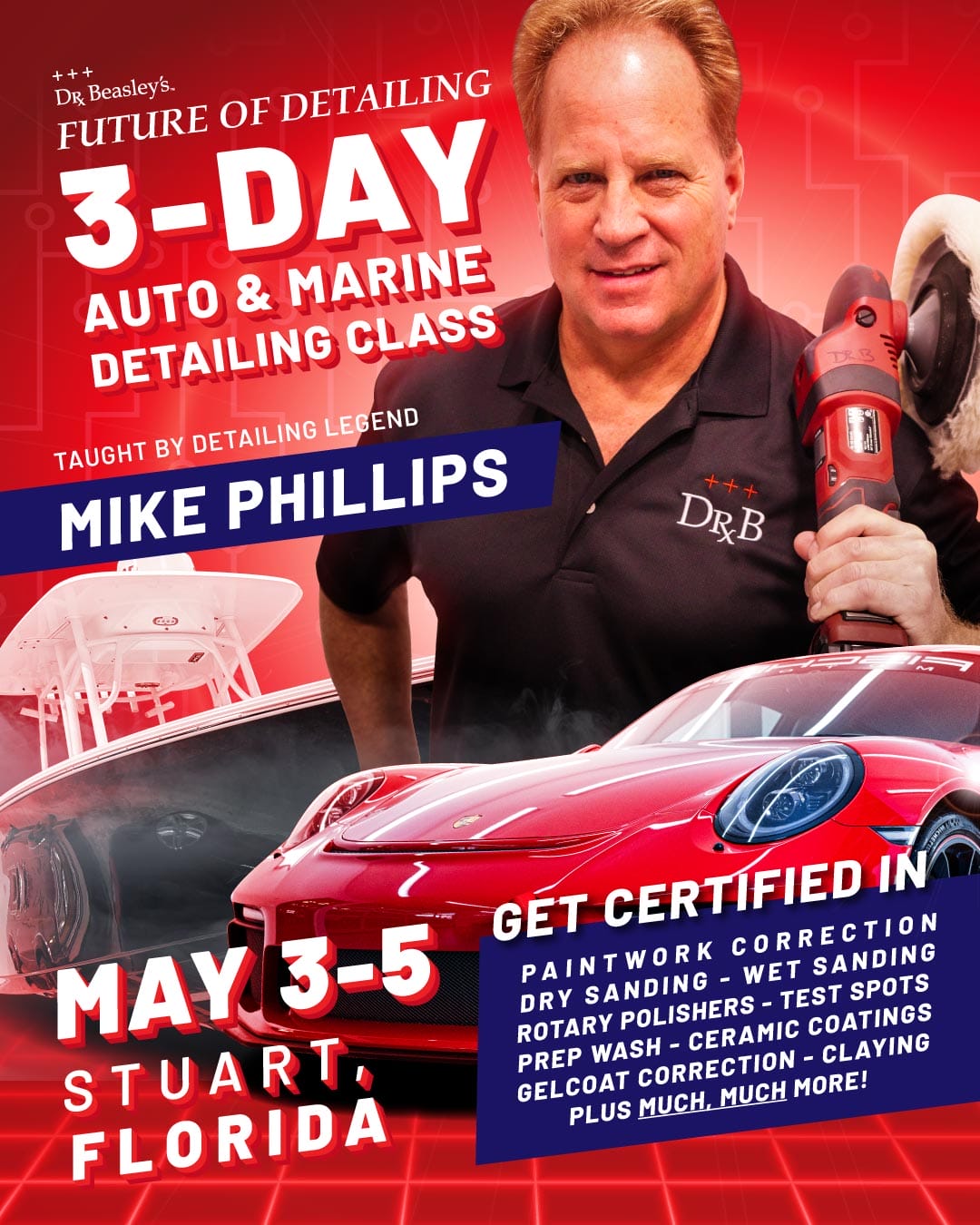 Mike Phillips is a world-renowned detailing expert with over 30 years of teaching experience in the detailing industry. Now Chief Education Officer for Dr. Beasley’s, Mike is bringing his signature detailing classes to Dr. Beasley’s Future of Detailing education program to reach a whole new audience of detailing up-and-comers.