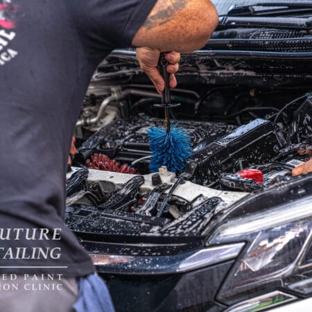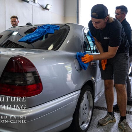 The first day of the Future of Detailing Primer Clinic focuses on the Dr. Beasley’s products and procedures used to prepare vehicles for paintwork correction and ceramic coating. Students will learn both wet washing and waterless washing using Dr. Beasley’s Ceramic Body Wash and Prep Wash, respectively. Students will also learn mechanical and chemical decontamination with clay bars and Dr. Beasley’s Total Decon.
