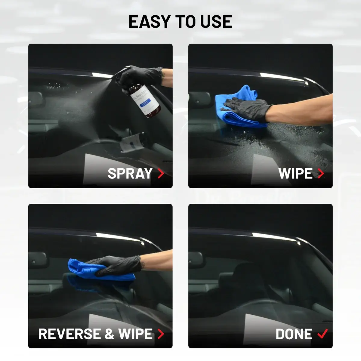 Whether it’s your windshield or your side windows, automotive glass gets dirty quickly and is often difficult to clean. And messy windows aren’t just unappealing to look at – they make it harder to see the road while you’re driving, too. Don’t find yourself agonizing over how you’ll get that splattering of bird droppings off your windshield – have Dr. Beasley’s Glass Cleanser ready to go. With just a spray and wipe, tough contaminants will be gone in seconds, restoring the clarity you and your glass deserves.