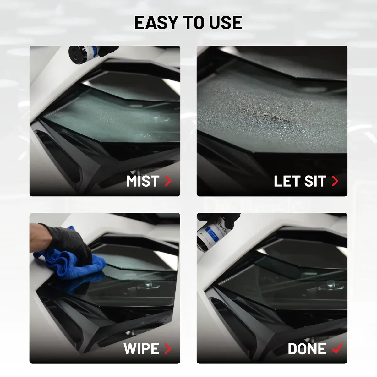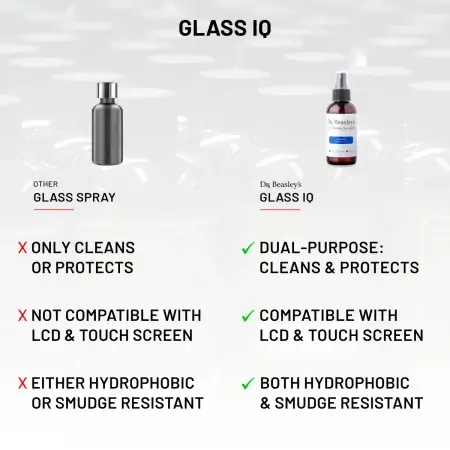 Glass IQ’s protection is hydrophobic to bead off water and resist smudges for easy cleaning.