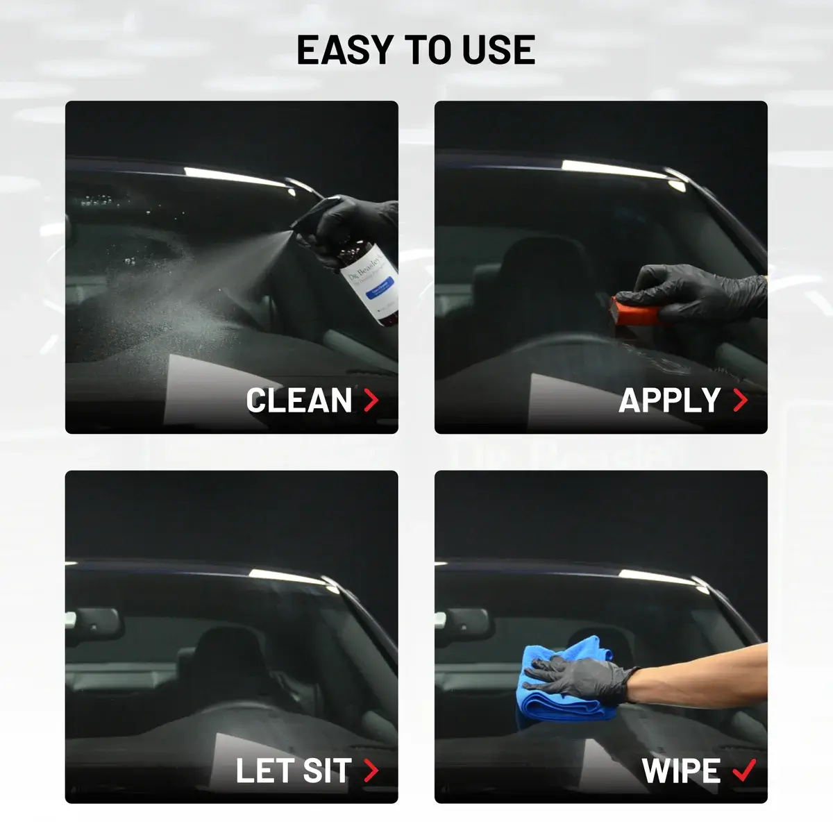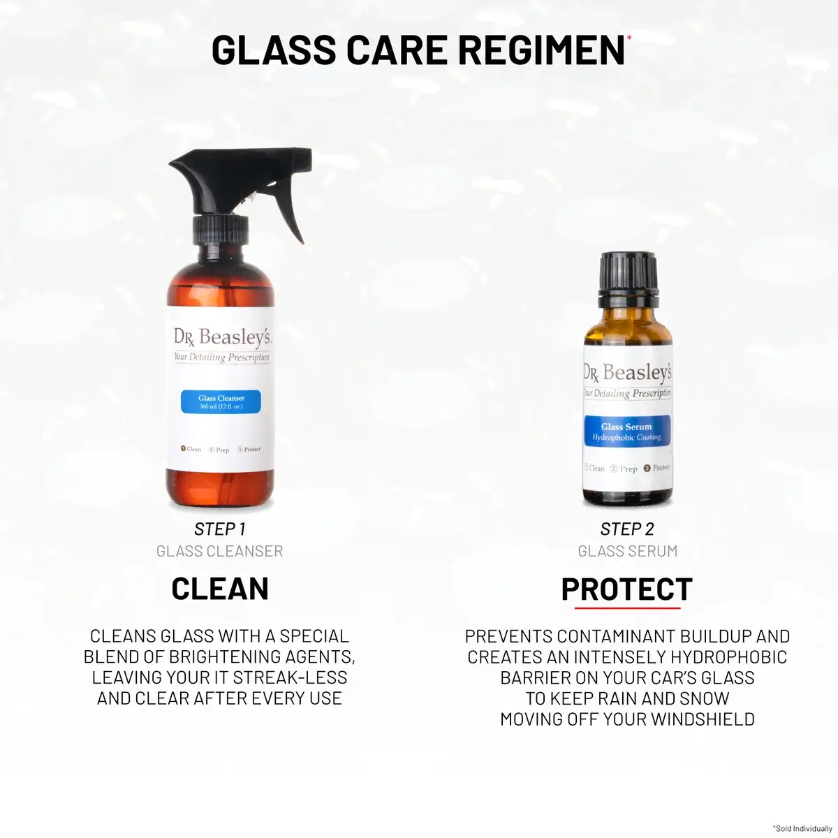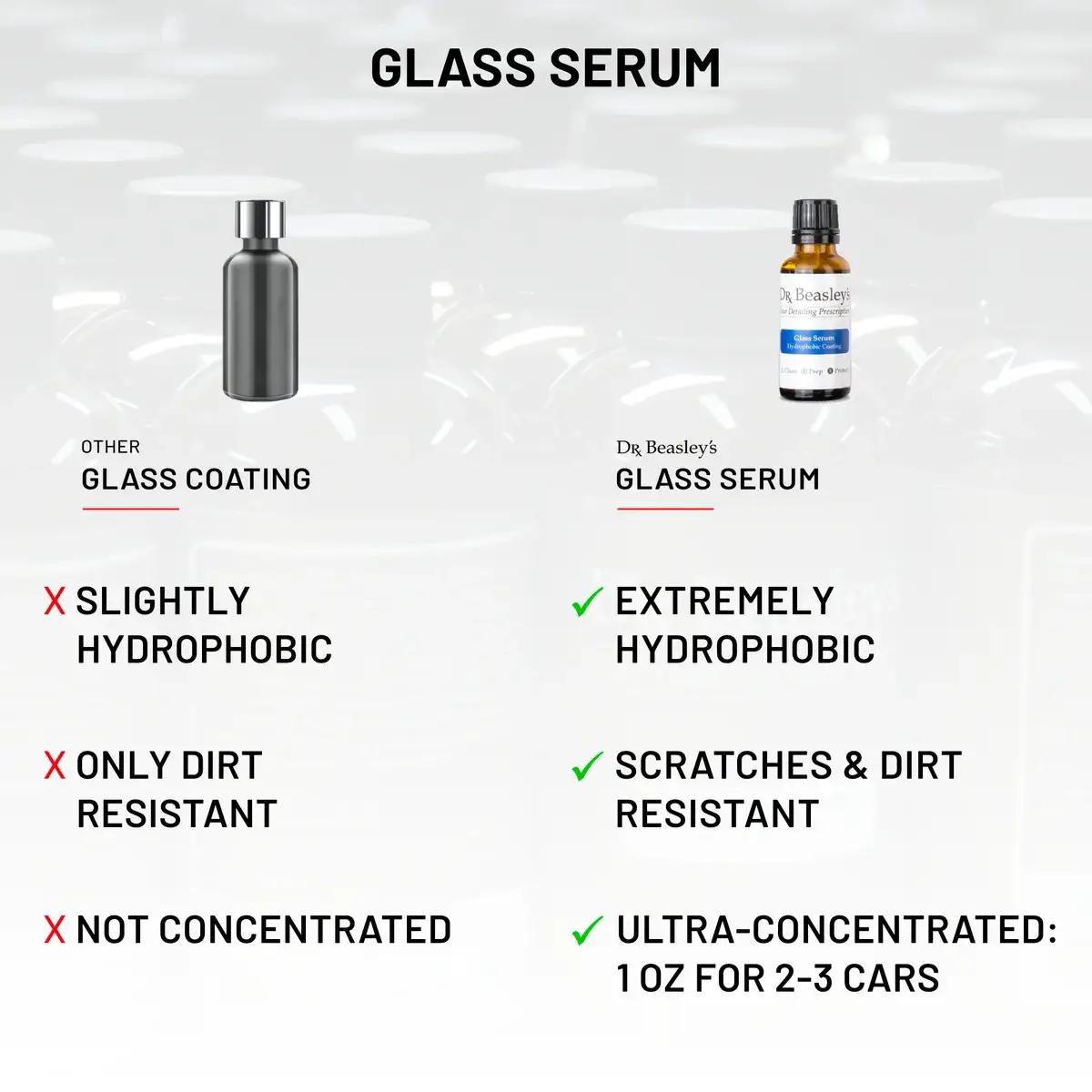 Our hydrophobic protectant for glass is long lasting, scratch, and dirt resistant. This nanocoating is easy to apply and keeps glass insanely hydrophobic, especially on the highway. After a few simple preparation steps, your glass will be ready for an application of Glass Serum.