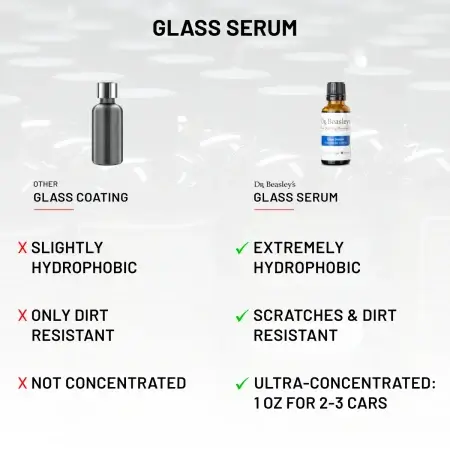 Glass Serum is designed to increase visibility while driving through tough weather. Dr. Beasley’s is based in Chicago, so we see plenty of rain, snow, sleet, and other extreme weather conditions. Keeping the elements off your windshield is crucial for safety as well as a better driving experience.