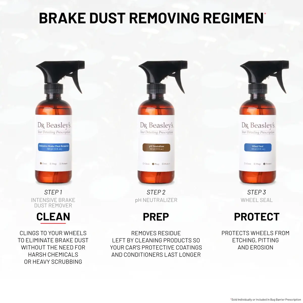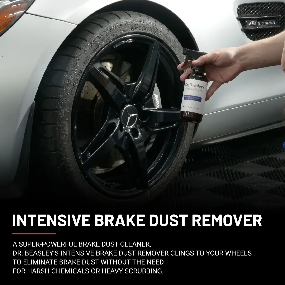 Fresh brake dust on your wheels is easy to get off. It’s when you let it sit around for a while that it gets impossible to remove. That’s because it embeds in your wheels, ultimately leading to irreversible pitting and rusting. To stop this from happening to you, you’ll need the power of Dr. Beasley’s Intensive Brake Dust Remover. Formulated to dissolve brake dust at the chemical level, it loosens the contaminant from the surface, allowing it to dissipate with a quick wipe down. No harsh chemicals needed – just the power of Dr. Beasley’s.