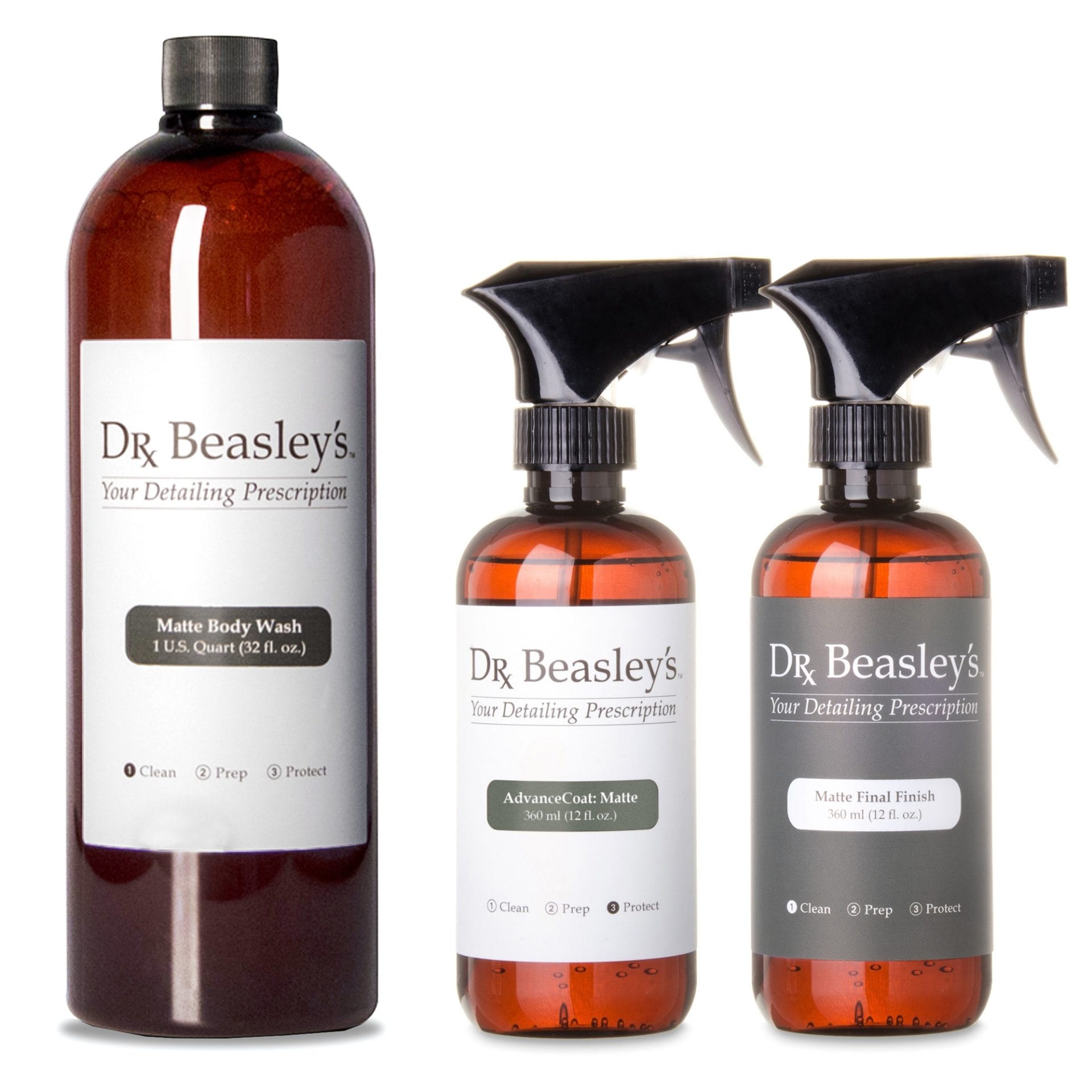 Matte paint stands out when it’s in good shape—that’s why keeping it clean is so important. Dr. Beasley’s Matte Maintenance Kit makes persistently perfect matte paint a reality by replenishing your supply of Matte Body Wash and Matte Final Finish. At a 32 oz size, your new bottle of Matte Body Wash will give you a whopping 32 washes right out the gate. And with a fresh Matte Final Finish in your glove compartment, you’ll be able to knock out small messes no matter where you are.