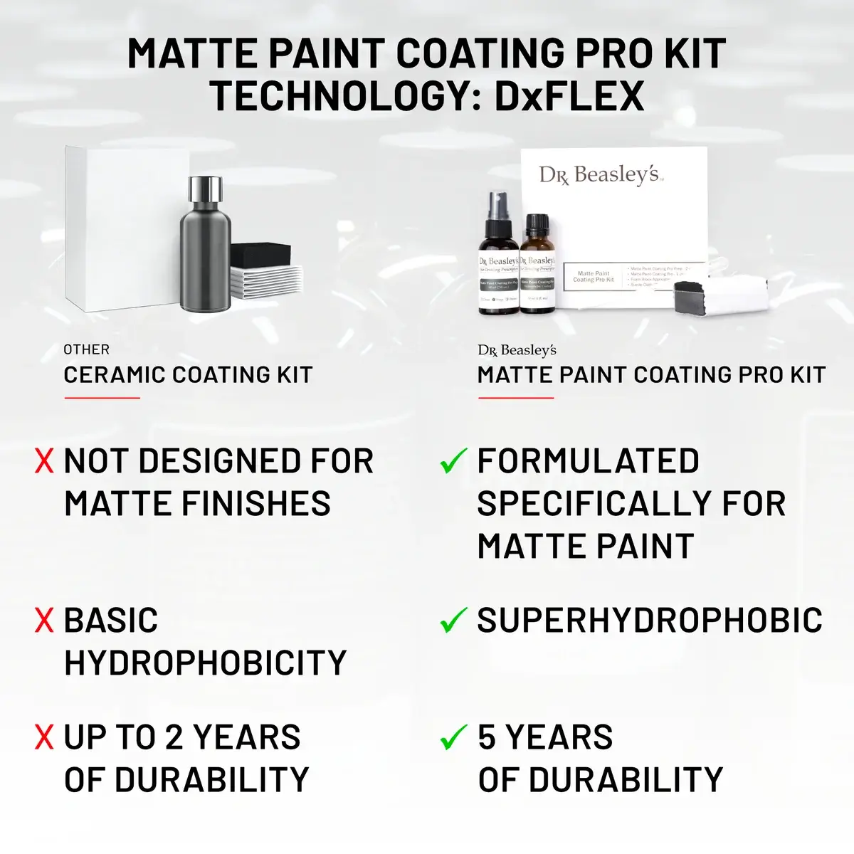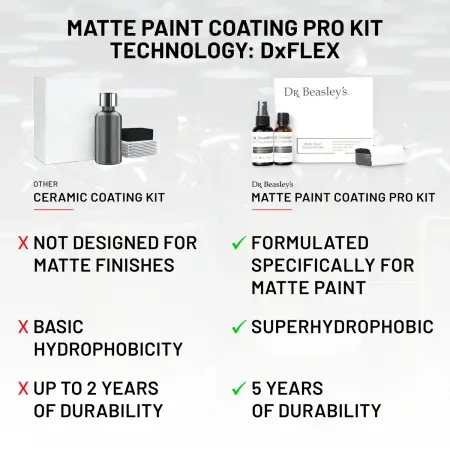 While our original Matte Paint Coating had a solid longevity, Matte Paint Coating Pro is truly in it for the long haul. With a fully inorganic 100% solids formula, prep product to ensure proper bonding, and an elastomeric nanostructure, Matte Paint Coating Pro is absolutely built to last. We stand by this technology firmly, so we warranty authorized installations for 5 years. With regular cleaning and occasional maintenance, your coating will continue to perform for years on end.