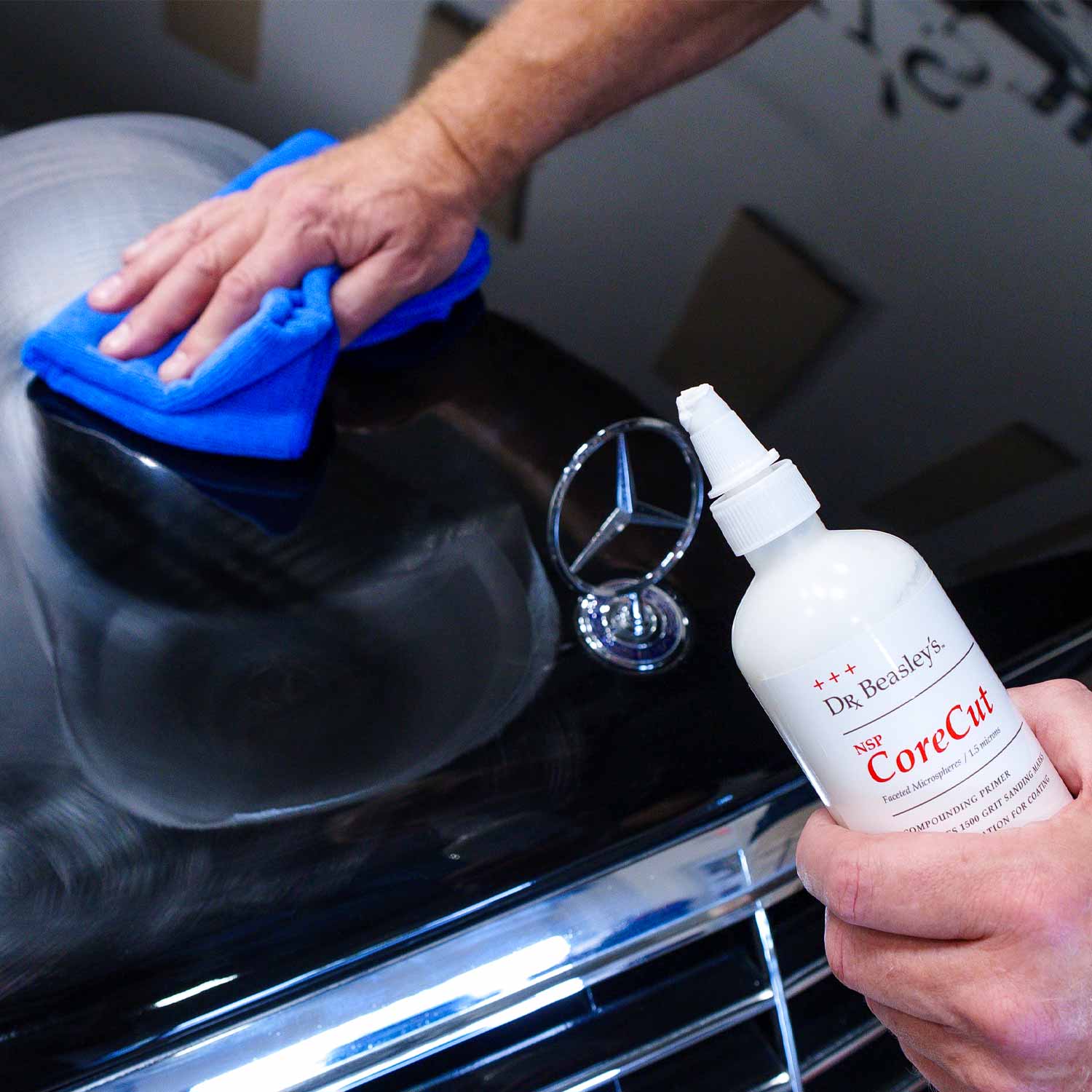 Jim Lafeber (Dr. Beasley’s founder, president, and chemist) saw this first hand when his shop foreman Christyan struggled to level some deeper scratches in a persnickety customer’s black paint. Christyan was already using Jim’s most powerful abrasive, NSP 150. How could Jim raise its level of aggression? He considered increasing abrasive size, but bigger abrasives mean swirl marks that need to be polished out and a greater risk of paint burning.