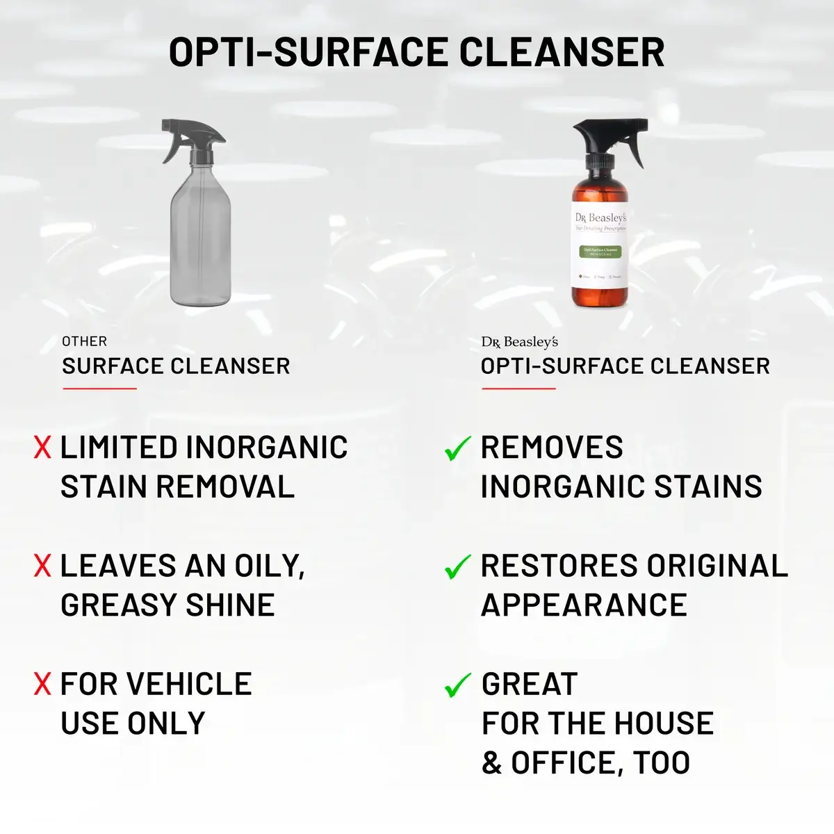 Engineered specifically for interior vinyl & plastic, Opti-Surface Cleanser cleans these surfaces with maximum effectiveness.
