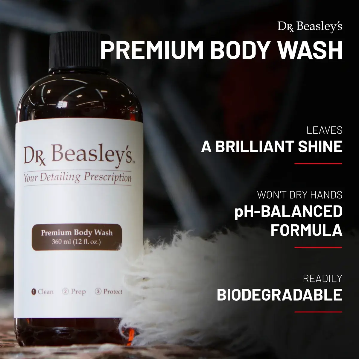 The dirt and grime you see on a car’s surface is really only a fraction of the gunk lurking within your car’s paint thanks to the environmental contaminants and industrial fallout that slowly embed themselves into your finish. To rid your paint of every last bit of dirt, Dr. Beasley’s Premium Body Wash creates a thick foam over your paint that lifts and traps embedded contaminants, allowing them to be rinsed away with ease. Once you see the suds, you’ll have confidence knowing Premium Body Wash is eliminating all of the contaminants, even the ones buried deep inside.