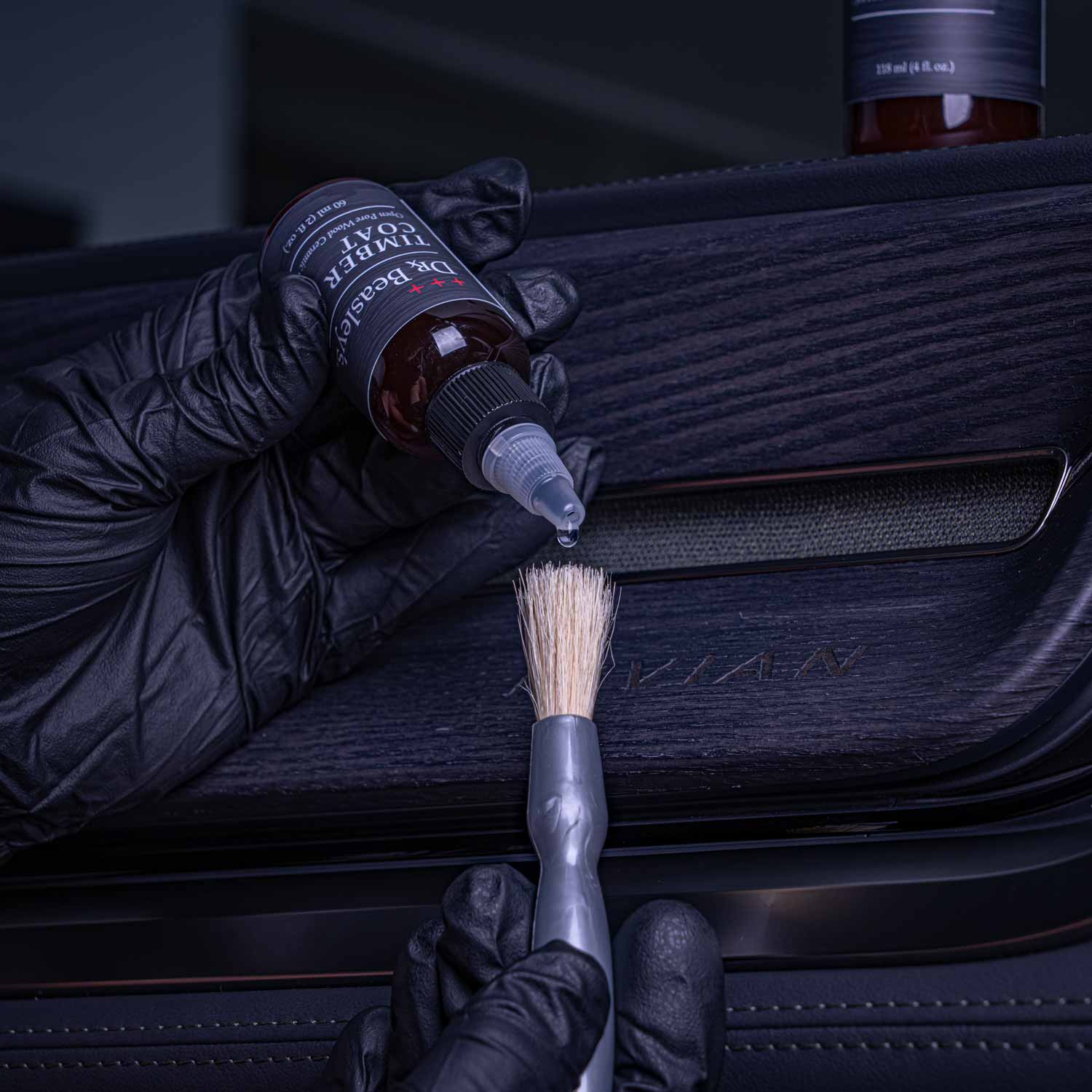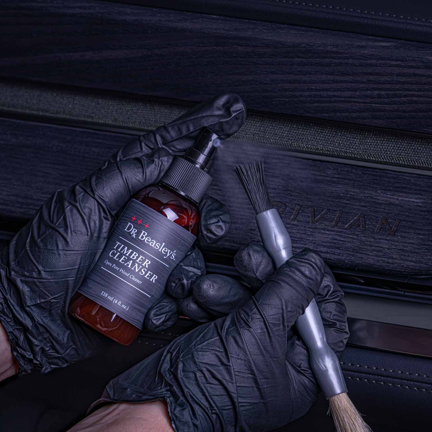 Inspired by the open pore wood trim in his own Rivian R1S, Dr. Beasley’s Founder & Chemist Jim Lafeber developed products for cleaning and protecting this unique surface: Timber Cleanser and Timber Coat.